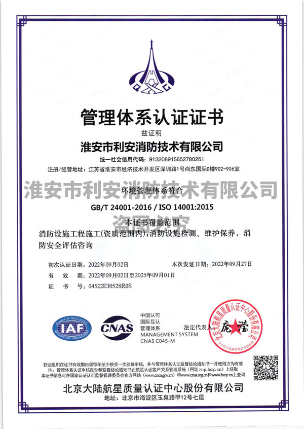 利安消防近期實現的消防寧靜評價報告和修建消防舉措措施檢測報告 | [2021-1-20] | |